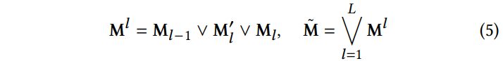 다음 수식을 통해 각 프레임에 대한 motion region M^l 을 계산 함으로써, 이전의 프레임이나 다음에 생성될 새로운 모션으로 인해 변화되는 영역을 식별하고자 한다.